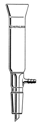 ![]() Adapter used for reduced pressure filtration with plain stem buchner funnels. Top is flared to accept the listed size pluro stopper. The hose connection has an O.D. of 10mm at [更多] ![]() Adapters are used for reduced pressure filtration with plain stem buchner funnels. Top is tooled to accept the listed size of pluro-stopper. Serrated hose connection has an O.D [更多] ![]() Graduated upward to 0.5mL in 0.05mL subdivisions, from 0.5mL to 3mL in 0.1mL subdivisions, from 3mL to 5mL in 0.5 mL subdivisions, and from 5mL to 100mL in 1mL subdivisions. Ma [更多] ![]() This apparatus consists of a Soxhlet extractor, an Allihn condenser and a flask, all equipped with joints. The tubulation O.D. on the condenser is 10mm.b>b> [更多] ![]() Bulb in siphon tube near the top of tube facilitates cycling of the siphoning action. The siphon tube is protected from accidental damage by the vapor tube. Joints at the top [更多] ![]() Micro size Soxhlet extractor for use with 10 x 50mm paper or glass thimbles. Extractor body has a 1922 top inner joint and a 1420 lower inner joint. Complete apparatus consists [更多] ![]() Jumbo Soxhlet extraction apparatus equipped with a Duran flange at the top of the extractor. Flange is formed with a groove in the flat portion of the mating surface to accept [更多] ![]() All glass extraction thimble permits viewing during extraction process and subsequent weighing. Sizes correspond to CG-1368 or CG-1369 extractor. Available in coarse or extra c [更多] ![]() Similar to CG-1368, but supplied with a round bottom instead of a flat bottom flask. All specifications are the same as CG-1368.p class='this_content'> b>u>SPECIFICATIONS:b>u> [更多] |