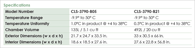 These unique refrigerated incubators are ideal for shelf life and life cycle testing, general incubation or refrigerated storage. The heating and refrigeration systems offer a microprocessor based control system with a digital temperature display (resolution to 0.1C above 0° C operation) and high-quality cabinet construction. The internal forced air circulation system provides maximum temperature uniformity. Both models come standard with a built-in alarm system that alerts the operator to temperature deviation by monitoring user adjustable high and low temperature limits and has both an audible and visual warning system which includes remote dry contacts for remote alarm condition monitoring. Both models are equipped with an internal chamber safety thermostat for added over-temperature protection. The model B21 provides more than 20 square feet of internal shelf space plus two removable utility baskets (approx. 400 B.O.D. bottle capacity), the B05 model provides more than five square feet of shelf space (approx. 90 B.O.D. bottle capacity). Both the shelves and baskets in these products are epoxy coated for long-lasting durability and ease of cleaning. Both models come with built-in door shelves for added product storage and access convenience. Both models feature a manual defrost system that allows you to select the appropriate time for the system to be engaged. For performance assurance, each unit is completely tested and shipped with its unique pull down performance graph. The exterior is constructed of heavy gauge steel with a baked-on white epoxy coating for long lasting durability and scratch resistance. The interior is white molded ABS with no seams on the side walls and floor for easy cleaning and decontamination. The interior environment is protected by CFC-free, high-density foamed-in-place urethane insulation. The model B21 includes an interior light and a built-in door lock for security. Both models feature adjustable leveling legs.