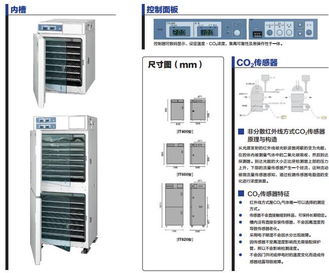 为达到设定温度,标配了自动过升防止功能(设定为+2℃)和独立过升防止器。通过温度传感器和CO2传感器进行监控,在温度异常时停止温度调控,CO2浓度异常时停止CO2调节。